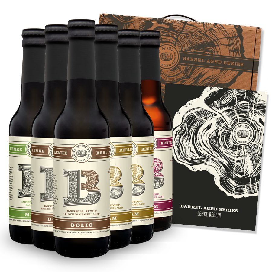 Mit unserer dekorativen Barrel-Series-Box tretet ihr eine Reise durch dieses einzigartige Universum an. Unser Barrel-Koffer enthält eine einzigartige Auswahl unserer „Barrel Aged Series“ mit ausführlicher Beschreibung zu den einzelnen Bieren sowie Hintergrundinfos zur Historie - insgesamt sechs Biere à 0,33 l Flasche.