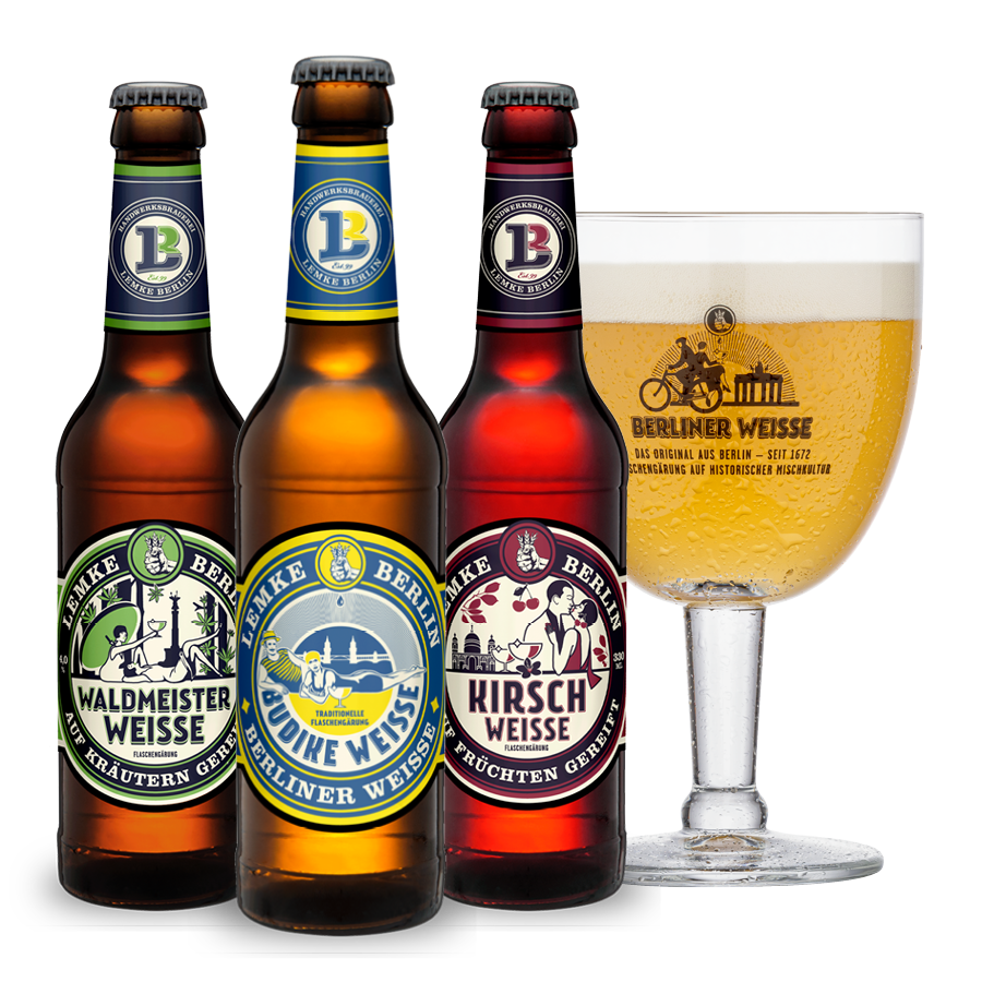 Gehört zu Berlin wie das Brandenburger Tor und der Tiergarten: Die Berliner Weiße ist ein kulinarisches Wahrzeichen der Stadt, eine einzigartige Sauerbier-Spezialität mit langer Tradition. Hier haben wir ein Mix-Set inklusive passendem Glas zusammengestellt - für Fans oder Neugierige. Denn: Ja, die echte Berliner Weisse ist natürlich sauer!