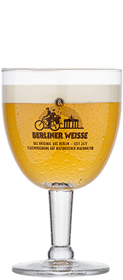 Das Beste: In dem Paket ist gleich ein passendes Glas enthalten - der Berliner Weiße-Pokal mit schönem Print.